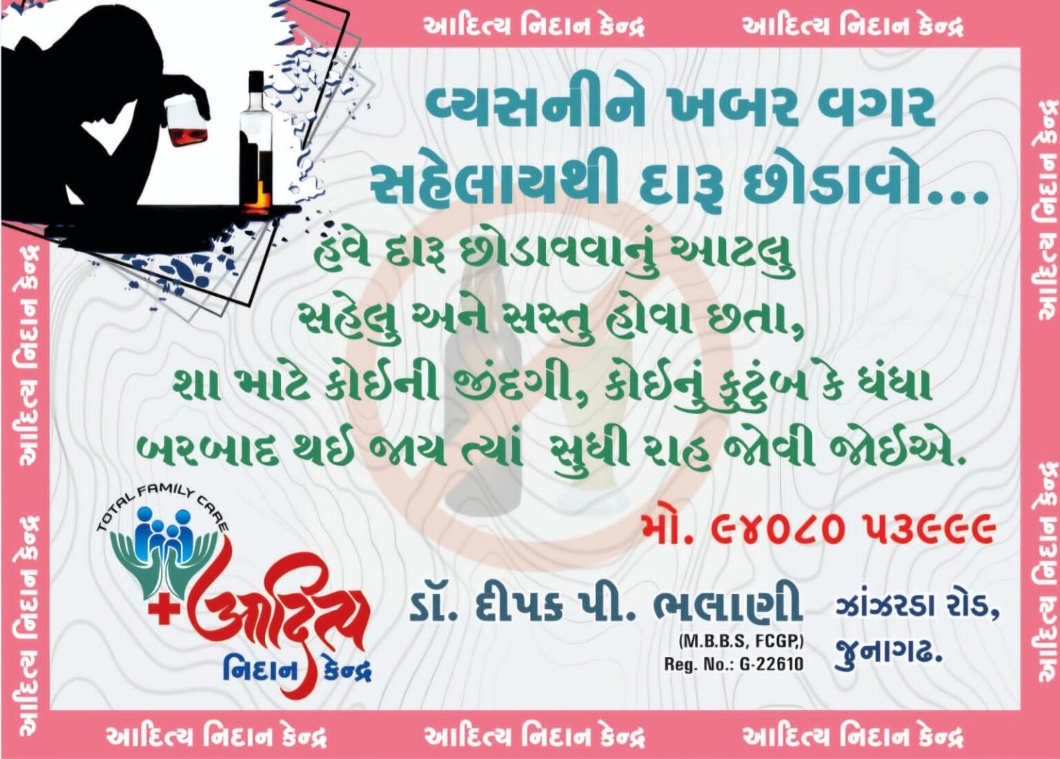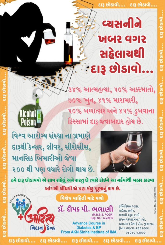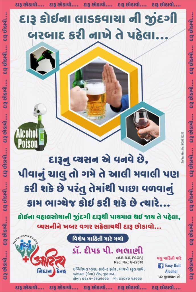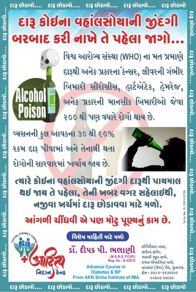 જેના લાડકવાયા દારૂ ના દૈત્યના રાક્ષસી પંજામા ફસાઇ ગયાછે તેના માટે ડીકોહોલ આશાનુ એકમાત્ર કીરણ છે.ત્યારે આ માહિતી પીડીત પરીવાર સુધી પહોંચાડવી એ પણ મોટુ પૂણ્ય નુ કામ છે.
